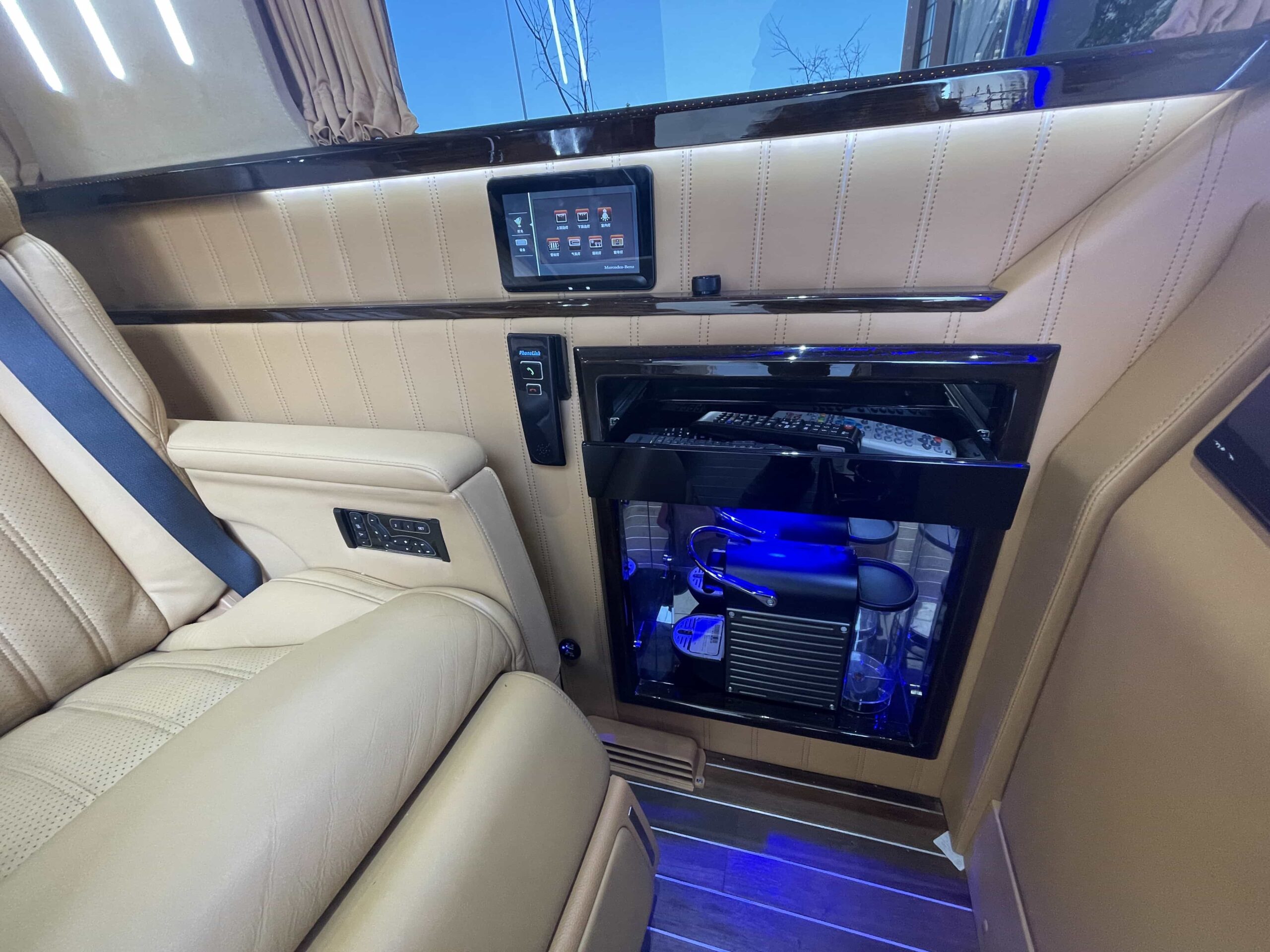 7-seat executive configuration, premium leather seating, rear air conditioning system, advanced infotainment display, multifunction steering wheel, power sliding door, alloy wheels, upgraded interior trim.