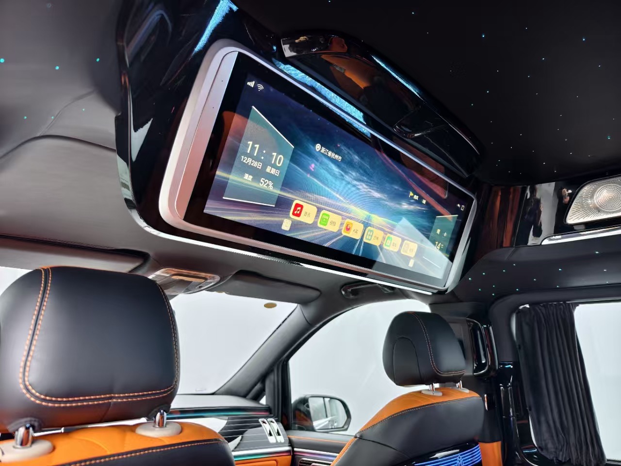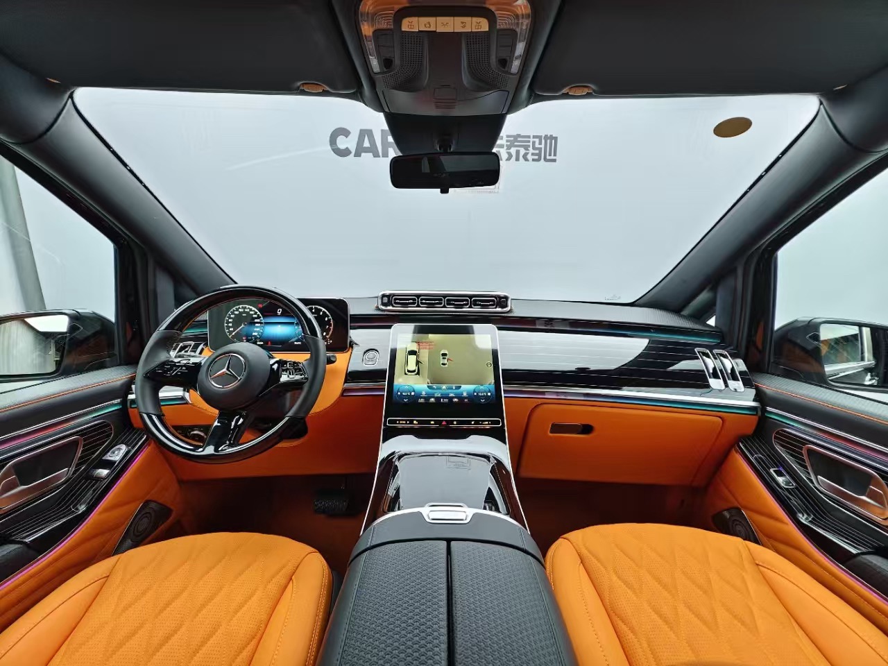 7-seat executive layout, premium interior materials, multifunction steering wheel, advanced infotainment display, rear climate control system, power sliding doors, alloy wheels, enhanced safety features.