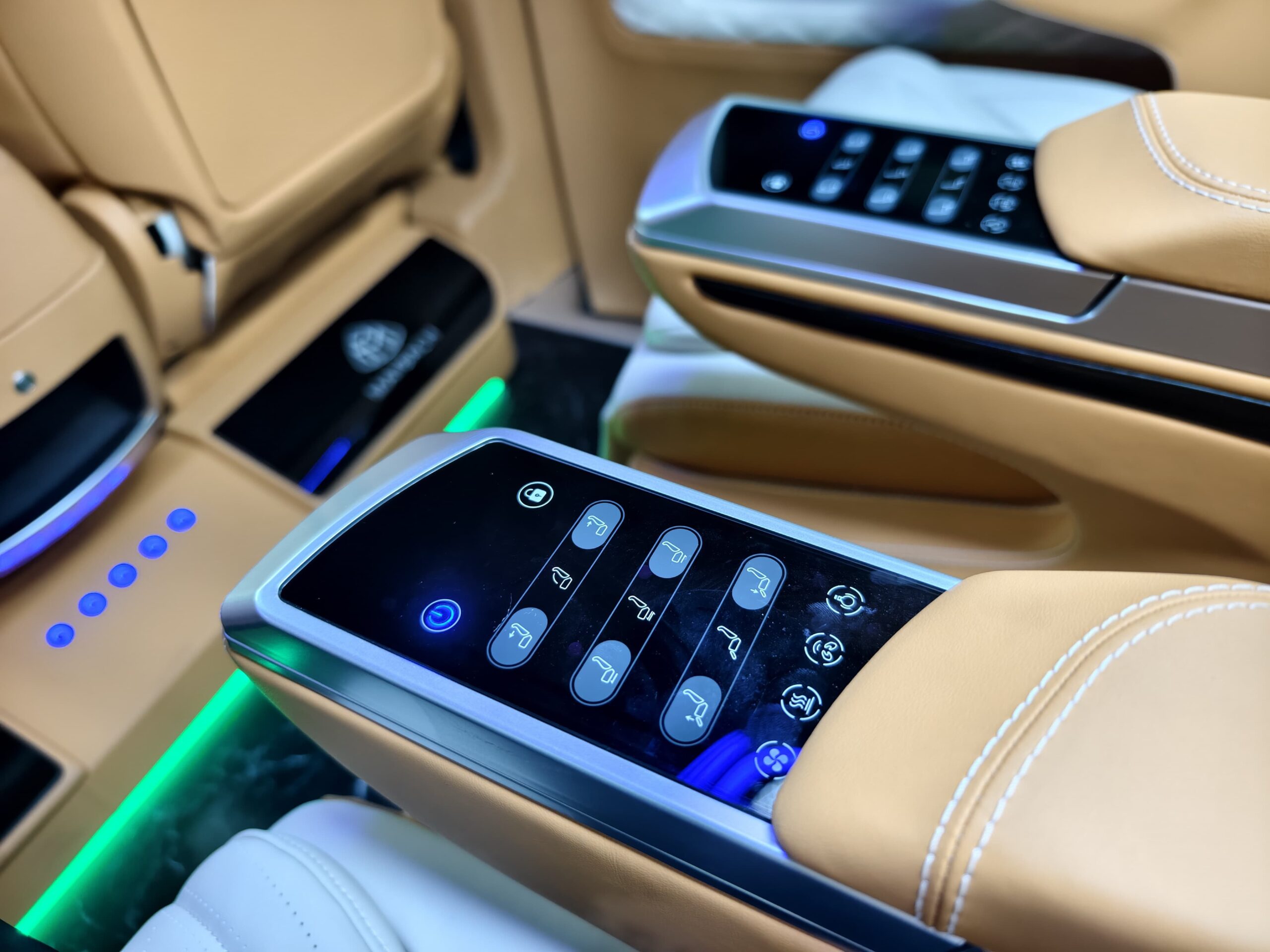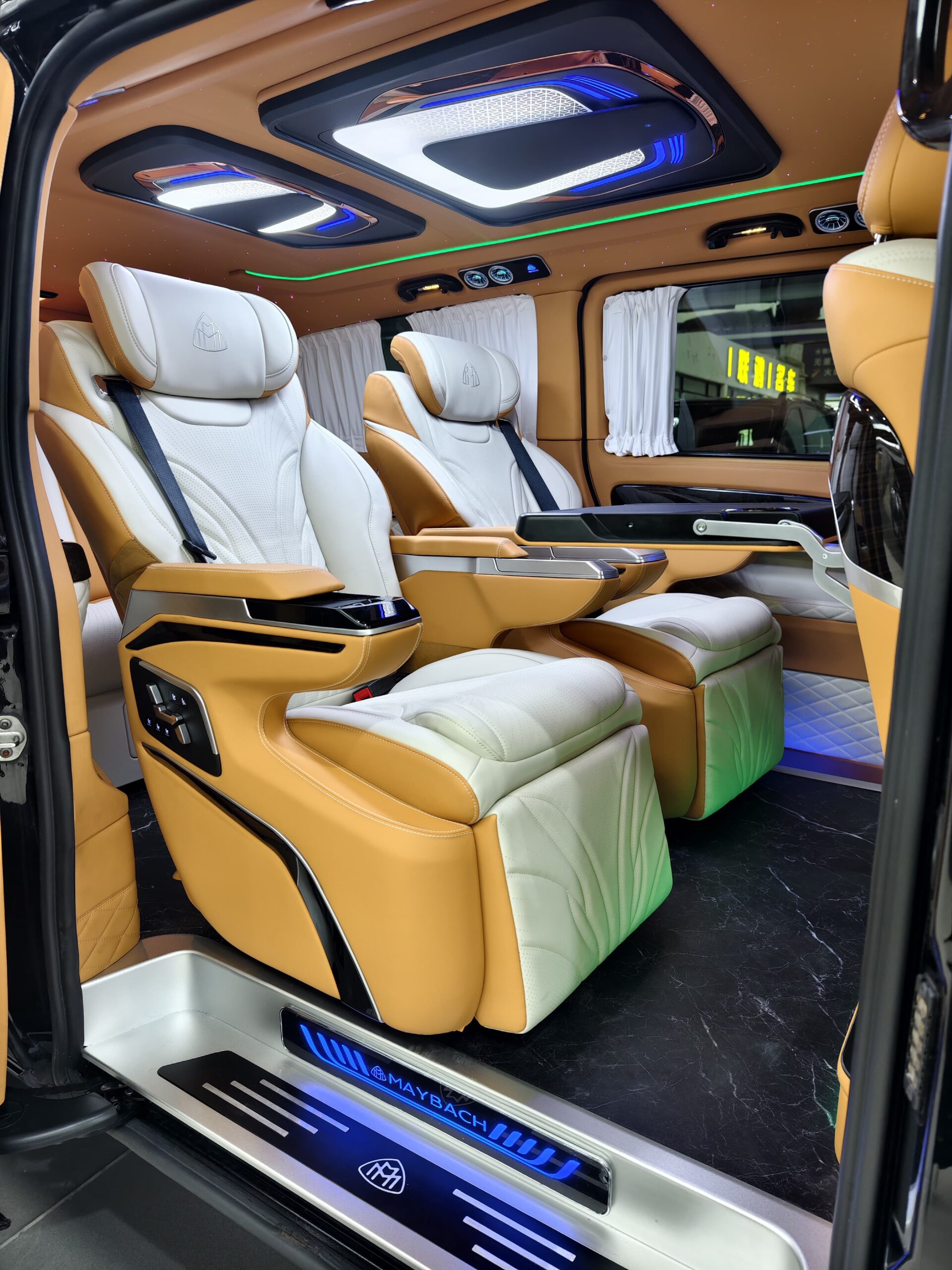 7-seater configuration, premium fabric/leather seating, multifunction steering wheel, rear air conditioning, infotainment system, power sliding doors, alloy wheels, parking sensors.